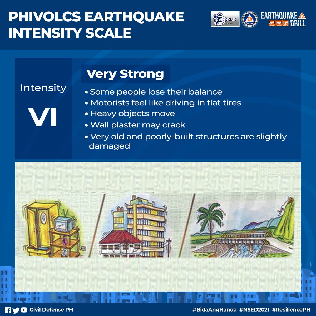 Phivolcs Earthquake Intensity Scale : Phivolcs Earthquake Preparedness Guide What To Do Before During And After An Earthquake Wandering Bakya - It was developed as upon a specific response to the 1990 luzon earthquake.. Intensity ratings are based on the phivolcs earthquake intensity scale. According to the german research centre for geosciences (gfz), the quake hit on monday 14 june 2021 at 10:38 pm local time at a shallow depth of 10 km. Phivolcs cites seismic scale specifically developed for the philippine. Hypocenter depth recalculated from 23.0 to 6.0 km (from 14.3 to 3.7 mi). This table gives mmis that are typically observed at locations near the epicenter of the earthquake.